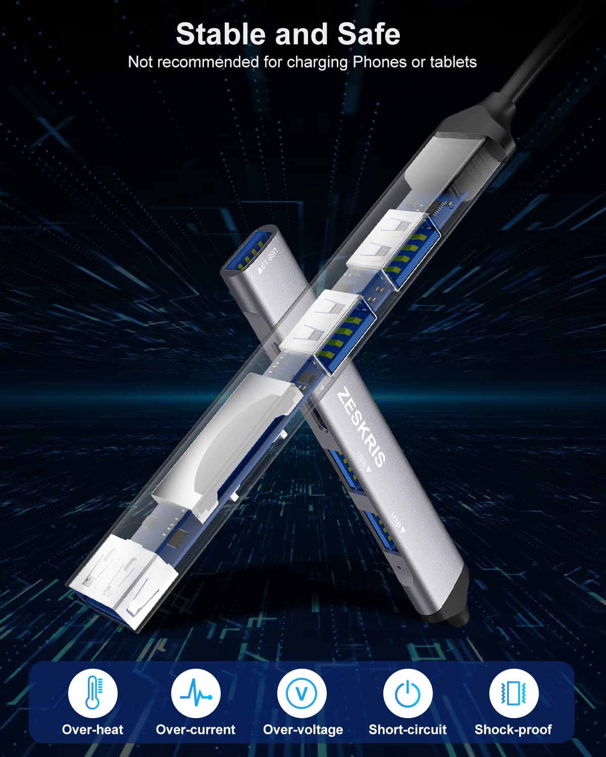 - 【Travel Essential USB Hub 3.0】: Our zeskris designer carefully designed it to be more efficient for business and holiday travel. Sleek and Portable. Small and thin. Focus on modern fashion