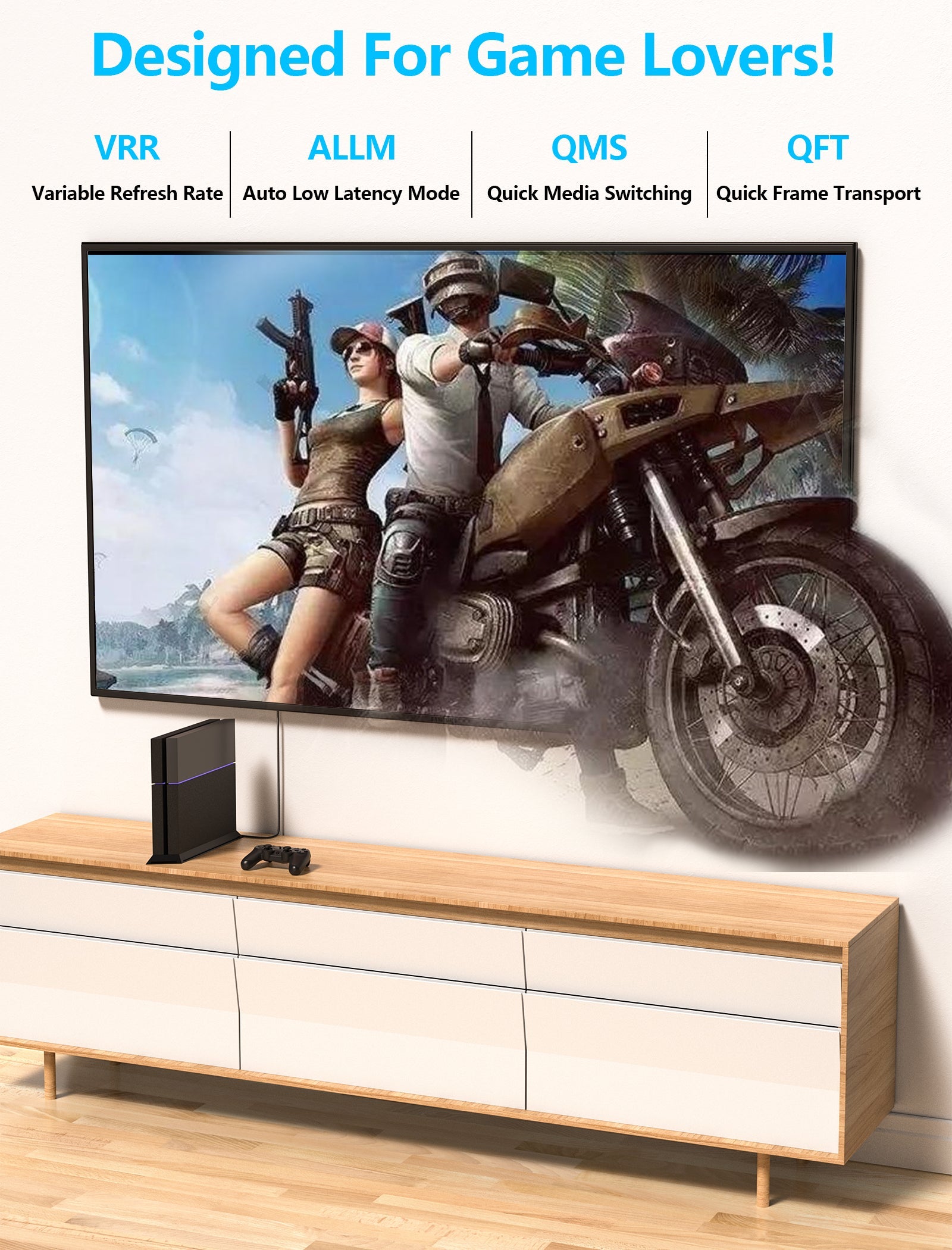 - [Recommended by game lovers] This 4k 120Hz HDMI cable maximizes the capabilities of the graphics card and CPU of the gaming device, covering all the functions required for gaming. Such as VRR, QMS, QFT, ALLM, etc., Especially 3A large-scale games and team battle games, easy play, which is very suitable for game lovers!